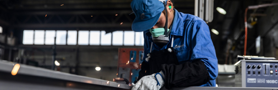 穴あけ加工、 折り曲げ加工、溶接加工を行う板金部門の中で、私は主に溶接加工を担当しています。高校生の時に授業で学んでいたこともあり、「溶接に携われる仕事をしたい!」と思っていた時に、弊社の求人票を見つけたことが入社のきっかけとなりました。