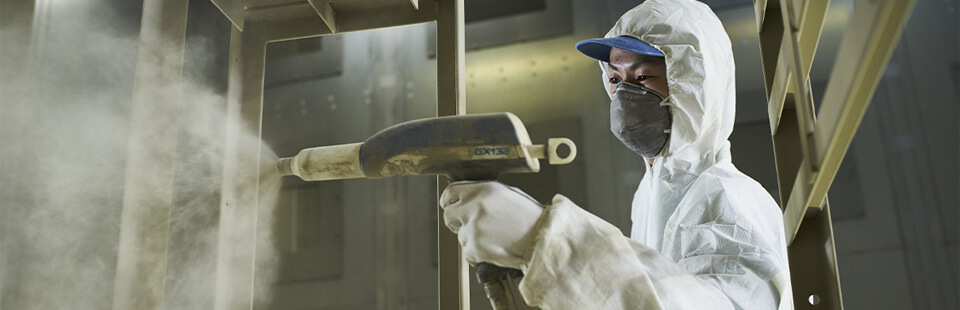 「ものづくりに携わりたい」と入学した仙台高等技術専門校で塗装施工を学び、そこで初めて粉体塗装に出合いました。パウダー状の顔料を直接被塗物に吹き付けてコーティングする粉体塗装は、耐久性や環境負荷軽減など多くのメリットがあり、私自身も強い興味を持ちました。そこで粉体塗装と溶剤塗装、どちらも作業できる弊社で技術を高めていこうと思い、入社を志望しました。